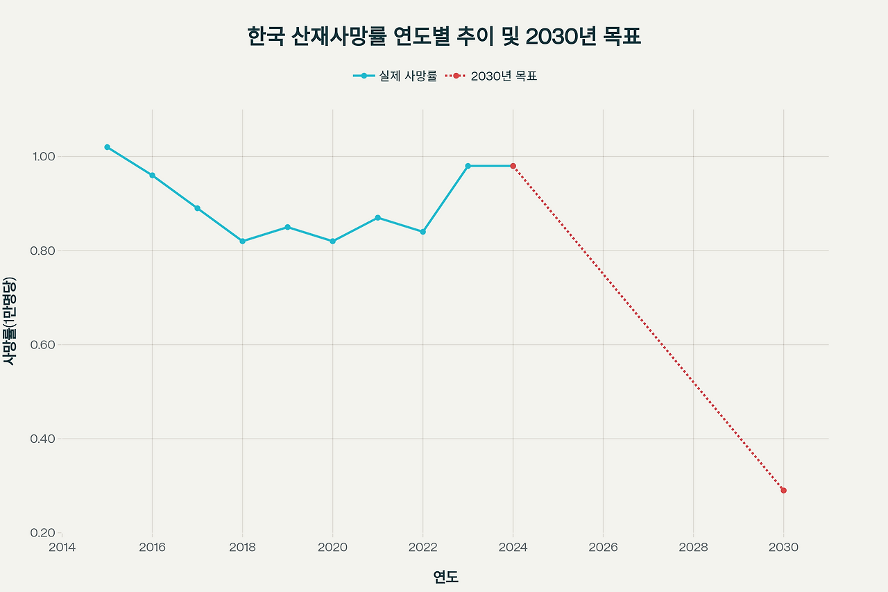 정부는 2030년까지 산재사망률을 OECD 평균인 1만명당 0.29명 수준으로 낮추겠다는 구체적인 목표를 제시했습니다. 이는 현재 우리나라 산재사망률(1만 명당 0.43명, 2023년 기준)을 크게 개선해야 하는 도전적인 목표입니다. 이를 위해 정부는 ▷작업중지권 요건 완화 ▷2인 1조 근무 의무화 확대 ▷징벌적 손해배상제 도입 ▷공공입찰 제한 요건 완화 ▷고액 과징금 부과 ▷기업 안전보건공시제 도입 ▷산업안전 감독 인력 확충 및 지방공무원 특사경 권한 부여 등 종합적인 대책을 추진할 예정입니다.