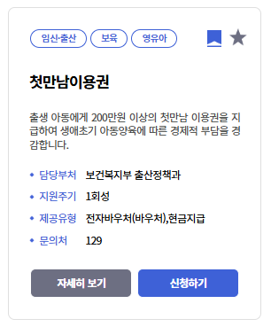 아이의 첫 출생과 함께 가장 먼저 받을 수 있는 대표적인 지원금이 ‘첫만남이용권’입니다. 2024년 이후 출생한 신생아라면 첫째에게는 200만 원, 둘째 이상부터는 300만 원의 바우처가 국민행복카드를 통해 지급됩니다. 이 바우처는 기저귀나 분유는 물론, 장난감과 아기침대까지 대부분의 아기 관련 제품에 사용할 수 있어 매우 실용적입니다. 첫만남이용권은 별도의 신청 없이 출생신고만 해도 자동으로 지급 대상에 등록되며, 부모가 ‘정부24’나 주민센터에서 간단히 수령 방식만 선택하면 됩니다.