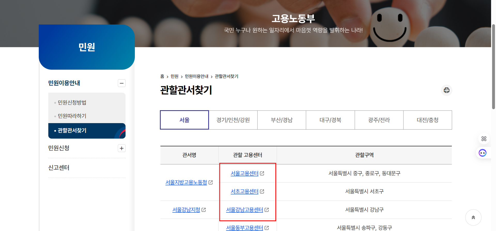 구직등록을 마치면, 이제 가까운 고용센터를 방문해 상담을 받아야 합니다. 고용센터 위치는 고용노동부 홈페이지에서 ‘민원이용안내 > 관할관서찾기’ 메뉴를 통해 손쉽게 확인할 수 있습니다. 시·군·구 단위로 센터의 주소와 연락처, 운영 시간을 확인할 수 있습니다.