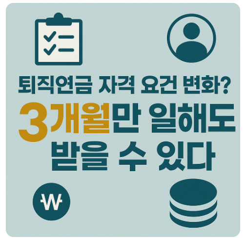 퇴직연금 자격 요건이 기존의 ‘1년 이상 근속’에서 ‘3개월 이상 근속’으로 대폭 완화되었습니다. 이는 특히 단기 계약직과 플랫폼 노동자에게 획기적인 변화로, 이제는 근속 기간이 짧아도 퇴직급여 수급이 가능해졌습니다. 본문에서는 이 개편의 배경, 대상 범위, 제도 적용 시기 및 실무 대응까지 전문가 관점에서 세부 분석합니다.