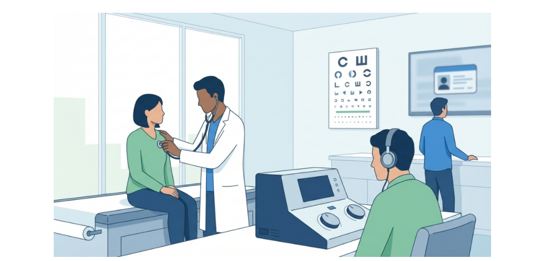 적성검사에서는 주로 시력, 청력, 색채식별 능력을 확인합니다. 1종 보통의 경우 두 눈을 뜨고 잰 시력이 0.8 이상이어야 하며 각 눈의 시력도 0.5를 넘어야 합니다. 안경이나 렌즈를 착용한 교정시력도 인정됩니다. 청력은 55데시벨 이상의 소리를 들을 수 있어야 하며 보청기 사용도 가능합니다. 신체검사 비용은 병원마다 다르지만 보통 6천 원에서 7천 원 수준이며 운전면허시험장 내 신체검사장에서도 검사가 가능합니다.